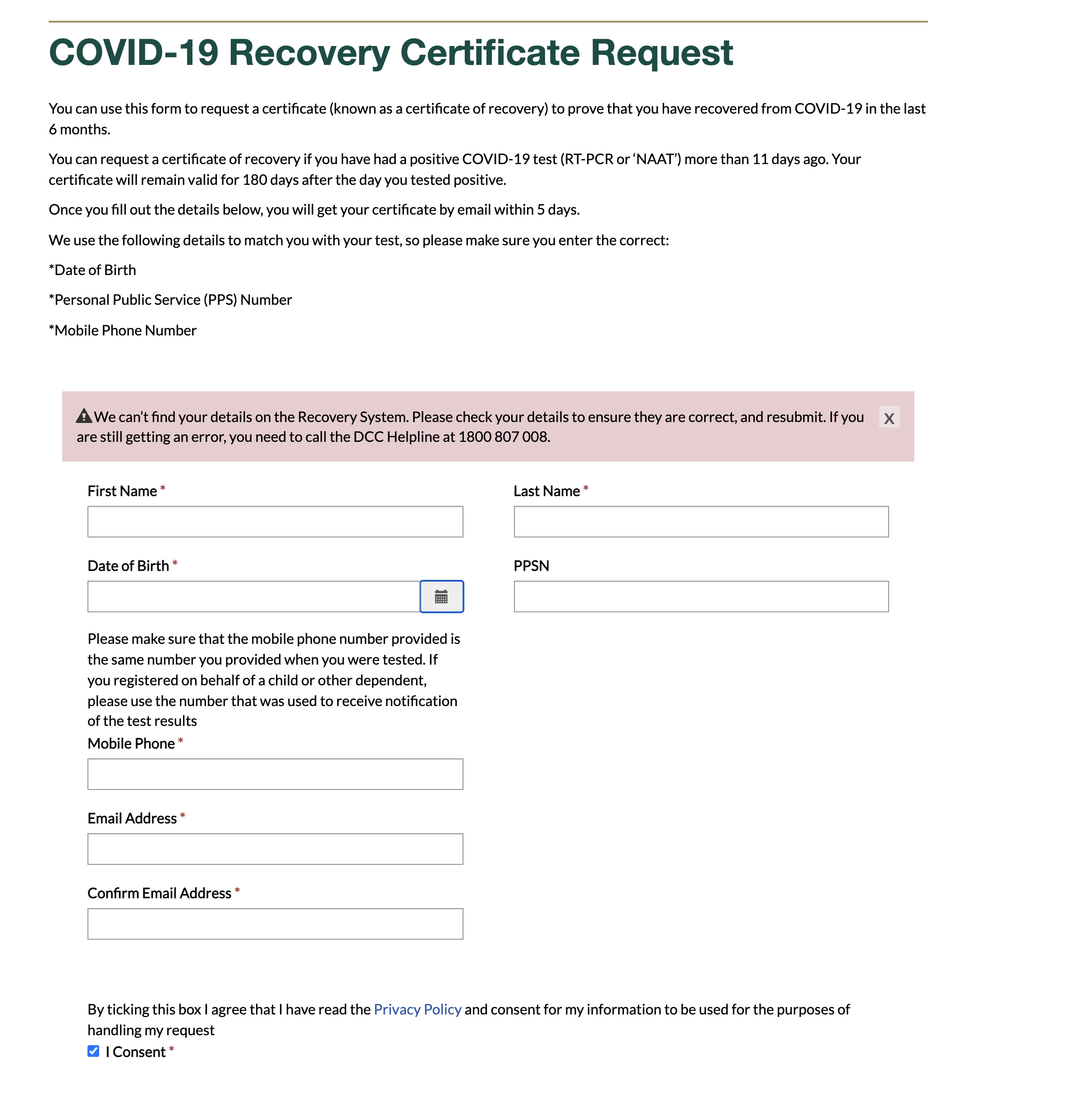 Dates the certificate is valid from and valid until (not more than 180 days after the date of the first positive NAAT test result)