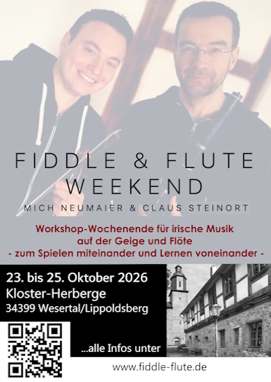 There are still many spots available for the Fiddle & Flute Weekend: This is not just another large workshop, but a warm, family‑like gathering full of music, laughter, and shared sessions.From October 23–25, 2026, we’ll meet at the cozy Herberge am Kloster Lippoldsberg for in‑depth classes for Fiddle & Irish Flute, along with plenty of personal exchange.